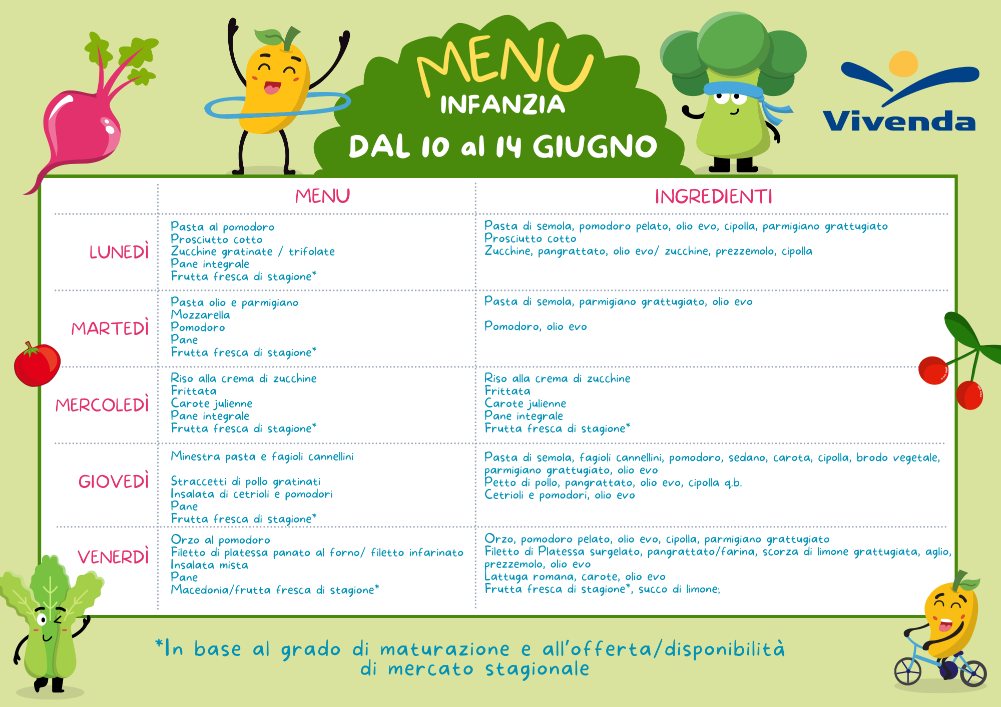 Menu Asilo Nido